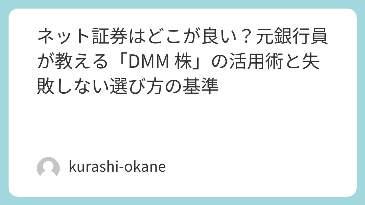 今回は、数あるネット証券の中でも、特に「シンプルさ」と「コストの低さ」で注目されるDMM 株について、元銀行員ならではの視点で判断基準を整理しました。