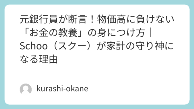 物価高が続く今、最強の防御は「知識」です。元銀行員の視点で、オンライン学習Schoo(スクー)を活用してお金の知識を効率よく学ぶメリットを解説。将来の不安を自信に変えたい方は、ぜひ参考にしてください。
