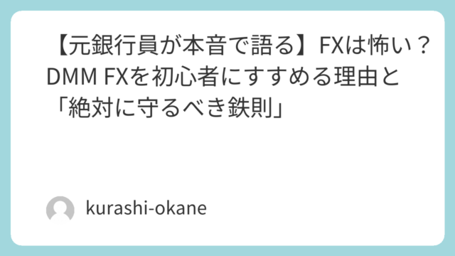 FX 【元銀行員が本音で語る】FXは怖い?DMM FXを初心者にすすめる理由と「絶対に守るべき鉄則」 元銀行員がFXの現実を解説。リスクを抑えて少額から始めたい人向けに、DMM FXのメリット・デメリットを徹底比較しました。「FXは怖い」と感じる方こそ読んでほしい、失敗しないための判断基準をお伝えします。 2026.02.12 FX